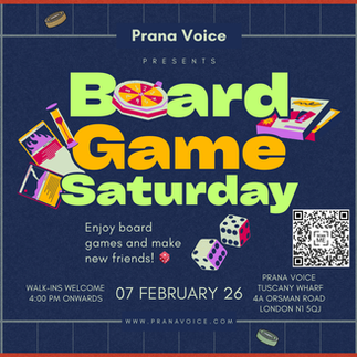 FREE ENTRY! A fun evening of board games and community connection at Prana Voice. Join us for friendly competition and relaxation.